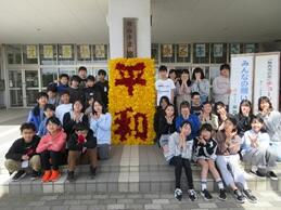 この花看板は小学校の校門前に飾り、地域の皆さんに平和を呼びかけます。