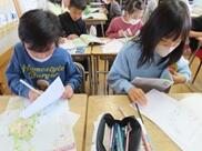 以前行った学校探検では物足りず、1年生はさらに詳しく調べています。