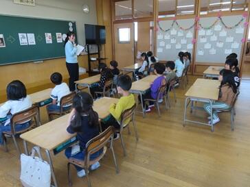 1年生は国語の説明文の学習中。どうやら自分で考えた意見を発表するところのようです。