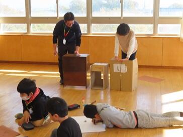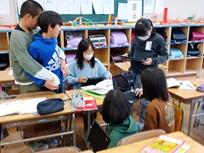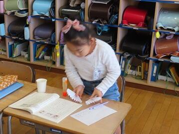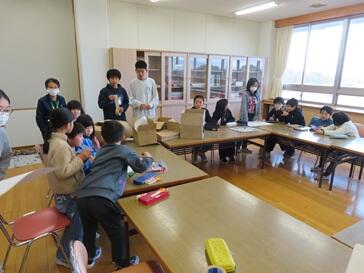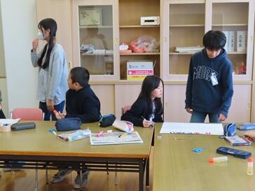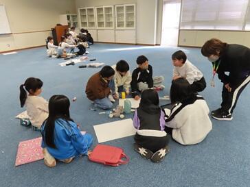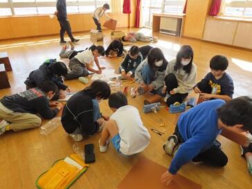 企画運営の2年生は集まってきた子どもたちに作り方を教えます。丁寧に分かりやすく教えています。