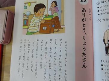 2年生は道徳で『ありがとう、りょうたさん』という話で学習中。