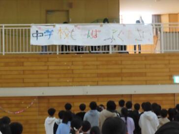 体育館ギャラリーに登場した横断幕「中学校でもがんばってください」はしばらく飾っておくことにしようっと。