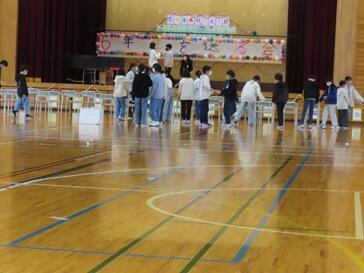 (写真1枚目は準備する5年生。最後の写真は六送会終了後のミーティングの様子です。)